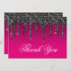 O brilho preto fino pinga com faíscas contra uma imagem fotográfica rosa quente e verde de vinho. Personalize a mensagem de texto "obrigado você". Todos os elementos brilhantes e brilhantes neste moderno design feminino são gráficos digitais.