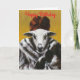 Este cartão de aniversário é ilustrado com uma ovelha vintage diva, retratada com elegância dos anos 40, enfeitada num casaco de pelo luxuoso e num turbo na moda vermelho. O plano de fundo apresenta uma matiz quente de ouro, adicionando um toque clássico e sofisticado. O original foi pintado em acrílico com algodão.