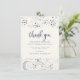 Uma maneira excelente de dizer obrigado aos seus hóspedes! Este cartões de agradecimentos apresenta elementos noturnos estrelados à mão azuis no topo e na parte inferior. "Obrigado" aparece na fonte moderna do script.