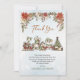 Share the joy of the season with this enchanting “A Little Merry Is On The Way” baby shower thank-you card, designed to perfectly match your winter celebration. The front showcases a graceful arch of red and white poinsettias, golden pine cones, and holly leaves above charming fluffy dogs enjoying Christmas cheer—a husky pulling gifts, a sheepdog in snow, an elf-hatted beagle, and a sleepy pug beside a glowing tree. Set against a deep black background with softly falling snow and golden sparkle accents, this design combines elegance and playfulness. Ideal for parents-to-be hosting a holiday or animal-themed baby shower, this thank-you card beautifully complements the full invitation collection and leaves guests with warm, festive memories.