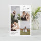 Cartões de agradecimentos de casamento com uma colagem de quatro fotos e obrigado-o num guião de assinatura elegante de um lado. Do outro lado, mais duas fotos e um obrigado impresso que você envia e seus nomes.