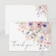 This flat thank you card is designed to match a sweet and whimsical floral theme. The front features soft watercolor wildflowers and greenery surrounding the words “Thank You” in elegant handwritten script calligraphy. The soft color palette of blush pinks, dusty rose, lilac, lavender, violet, and fresh greens adds a gentle and charming touch.
