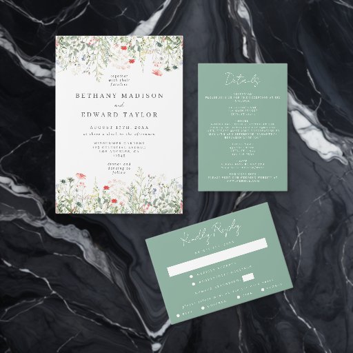Este design apresenta uma fileira de flores silvestres delicadas de aquarela. Perfeito para casamentos elegantes.