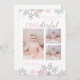 Cartões de agradecimentos de inverno OneDerland com flocos de neve rosa e prateada, primeira festa de aniversário