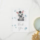 Cartão de agradecimento fofo com um pequeno zebra macho adorável e alguns corações de amor azuis