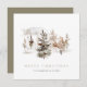 Envie desejos de feriado sinceros com este cartão de Natal maravilhosamente elaborado, com uma paisagem serena de aquarela em tons quentes de ocre. A cena pacífica mostra uma floresta com montanhas majestosas desaparecendo em um fundo branco suave, criando uma design elegante e suave. Perfeito para amantes da natureza e para aqueles que apreciam estética de férias minimalista, esta carta traz a tranquilidade da temporada para os seus cartões de natal.