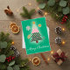 Envie alegria nesta temporada com um cartão de Natal caprichoso com uma árvore de Natal. Uma maneira divertida e sincera de se conectar com os entes queridos e compartilhar alegria festiva que parece pessoal e única. Definido em um fundo verde.