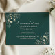 Chic vintage bohemian luxury emerald green hotel num cartão com flores douradas douradas e roteiro de caligrafia moderno. Um na moda e uma maneira elegante de compartilhar detalhes importantes com seus convidados.