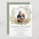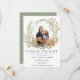 Nossa coleção de magia da floresta apresenta folhagens suaves em cores verdes suaves com sotaques de mauve empoeirado. Este cartão de foto de alteração de data tem uma coroa quadrada que envolve sua foto personalizada e a combina com fonte sem serifa para todas as informações. Escolha linda para o casamento inspirado na natureza durante todo o ano.
