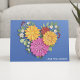 Cartão de saudação de buquê floral esculpido em forma de na moda elegante. Sentimento personalizável de "AMA SEMPRE". Fundo azul calmante com flores de primavera brilhantemente coloridas arranjadas em forma cardíaca. Design e tipografia simples e minimalista. Excelente para qualquer dia que quiser expressar seu afeto por outro.