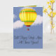 Gráfico digital criado com Photoshop de um casal voando alto em um balão de ar quente.
