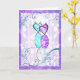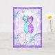Cartão decorativo personalizável para gatos, em teal e roxo, com espirros bonito e dois gatos estilizados na frente. Dentro são saudações de aniversário que podem ser personalizadas para o que você quiser.