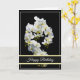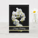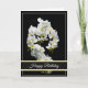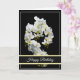 O cartão de aniversário é mostrado com um fundo preto e orquídeas brancas adoráveis. Tamanho de 5" x 7" Personalize este cartão ou comprar como está. A placa tem um dentro de mensagem especial. Imagem do stock