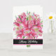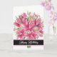 Cartão de aniversário mostrado com um impressão de lírios rosa bonito. Personalize este cartão ou comprar como está. A placa tem um dentro de mensagem especial.