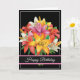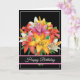 Cartão de aniversário com fundo preto e um bonito buquê de lírio.