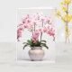 O cartão de aniversário é mostrado com uma adorável impressão floral de orquídeas. Personalize este cartão ou comprar como está. A placa tem um dentro de mensagem especial. Imagem licenciada