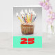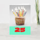 Cartão de aniversário para alguém a fazer 25 anos. Dentro da legenda "quarto feliz de um homem de um século".