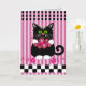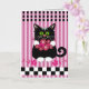 O cartão bonito traz uma ilustração vetorial em cores de tendência, mostrando um gato oferecendo flores. Este produto pode ser personalizado alterando as cores de fundo e o texto (dentro da placa)