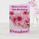 Uma bela flor de pêssego rosa faz uma imagem de excelente para este cartão floral de aniversário de 70 para a vovó. O texto pode ser facilmente personalizado como desejado.