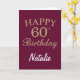 Burgundy Red e Dourada Cartão de Aniversário 60º com nome personalizado. Para mais personalização, clique no botão "Personalizar" e use nossa ferramenta de design para modificar este modelo.