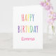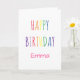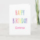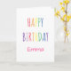 Cartão de Aniversário Cachorro Arco-Íris, com a inscrição divertida "HAPPY BIRTHDAY" na frente, nas cores do arco-íris, com o nome personalizado embaixo, em rosa-quente da moda. O dentro de saudação opcional da placa pode ser deixado como está ou personalizado/excluído como desejado.