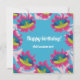 Cartão floral azul moderno de feliz aniversário personalizado. Cartão azul personalizado com flores grandes para ela. Personalizar com texto, nome, nome próprio, mensagem. Use este cartão azul de cores claras para uma mulher que ama flores, jardim, ilhas tropicais.