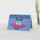 Cartão de aniversário com alienígena, nave espacial, e balões