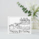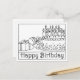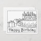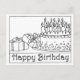 Este belo desenho em linha preta e branca está pronto para ser colorido, para uma maneira única de DIY celebrar um aniversário. Este cartão apresenta a frase "Feliz Aniversário" e uma imagem de presentes, um bolo e velas.