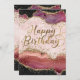 Este cartão de aniversário decorativo apresenta ágata rosa e dourada com brilho dourado e "Feliz Aniversário" em tipografia dourada cintilante.