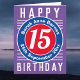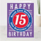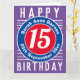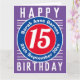 Cores brilhantes e design ousado. Cartão de aniversário numerado. 15 anos.