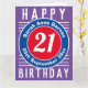 Cores brilhantes e design ousado. Cartão de aniversário numerado. 21 anos.
