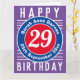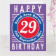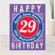 Cores brilhantes e design ousado. Cartão de aniversário numerado. 29 anos.