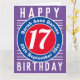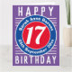 Cores brilhantes e design ousado. Cartão de aniversário numerado. 17 anos.