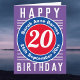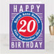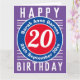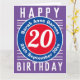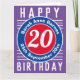 Cores brilhantes e design ousado. Cartão de aniversário numerado. 20 anos.