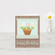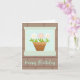 Um cartão de aniversário único que apresenta uma impressão das minhas delicadas margaridas de papel artesanais em um vaso que foram perfuradas e cortadas de papel, duas brancas e uma rosa. Elas estão em um parapeito de uma casa.