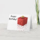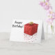 Que cartão de aniversário estrelado com um presente embrulhado em vermelho - surpresa, surpresa...