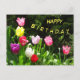 Cartão de Aniversário com Tulipas Coloridas e Text