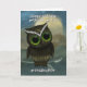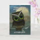 Uma coruja fofa sentou-se no cenário noturno com uma lua grande atrás dele, com obrigados para a E.D.R.