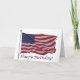 uma foto da bandeira memorável do veterano no bellingham, wa que acena orgulhosa em um dia ventoso com "feliz aniversario" em combinar o roteiro azul como um cartão de aniversário patriótico. vazio da esquerda para dentro para sua mensagem feita sob encomenda.