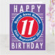 Cores brilhantes e design ousado. Cartão de aniversário de criança. 11 anos.