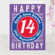 Feliz aniversário de 14. Cartão de 14. Cores brilhantes e design ousado. Cartão de aniversário de criança. 14 anos.