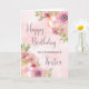 Cartão de aniversário para irmã com bonito flores cor-de-água cor-de-rosa e verso atencioso.