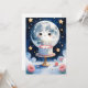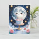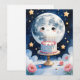Este cartão de aniversário encantador apresenta uma cena noturna caprichosa com uma lua gigante e sorridente adornada com bochechas rosadas fofinhas e olhos cintilantes. A lua paira num céu estrelado, rodeado por nuvens suaves e peludas e estrelas ouros penduradas. No primeiro plano, um bolo de aniversário sonhador, com glacé rosa e cinco velas acesas, senta-se numa elegante banca de bolo de ouro. O chão é aspergido com flores rosadas florescentes, adicionando um toque de magia e calor. Perfeito para um sonho de aniversário, este cartão captura a maravilha de celebrar sob as estrelas.