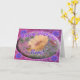 O fundo tem um efeito como as pétalas brilhantes com corriolas de incandescência em cantos. O ponto de foco é forma oval com portulaca amarelo e o zangão, misturados com o fundo. O texto lê, "feliz aniversario, mamã!" O interior tem a mensagem morna e sentimental.