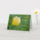 Bonito e atencioso cartão de saudação para o aniversário da filha com tulipa amarela e texto de estilo manuscrito.
