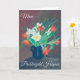 Um Cartão de Aniversário bonito para uma Mãe, com "Feliz Aniversário" em galês e um jarro azul de Daffodils e Tulips, de uma pintura de pastel de óleo feita por Judy Adamson.