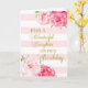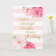 Cartão de aniversário para filha com flores cor-de-água rosa, listras cor-de-rosa pinceladas, texto dourado e verso atencioso.