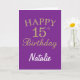 Cartão de Aniversário de 15 Roxo e Dourado