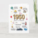 Tome uma jornada de volta ao ano de 1950 com esta de um tipo de cartão de aniversário que está explodindo com charme vintage. Mais do que uma simples carta, é uma mini cápsula do tempo cheia de fatos cativantes do ano em que você estava nascer. Na frente e no centro, 1950 toma as atenções, cercado por um tesouro de trivialidades divertidas, dos EUA e da população mundial, o custo médio de uma nova casa, preços do gás e do pão, eventos icônicos, e até mesmo os nomes de bebês mais populares da época. É como abrir uma janela para o passado. Esteja você celebrando um aniversário de marco ou apenas querendo compartilhar um sorriso, este cartão certamente despertará memórias, risos e inspirará conversas. Pensada, nostálgica e cheio de personalidade, é a maneira perfeita de honrar alguém especial com uma explosão do passado. Dentro do cartão de aniversário: e muitos, muitos mais!