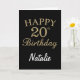 Cartão de aniversário de 20 brilhante preto e Dourado com nome personalizado.Para mais personalização, clique no botão "Personalizar" e use a ferramenta design para modificar este modelo.